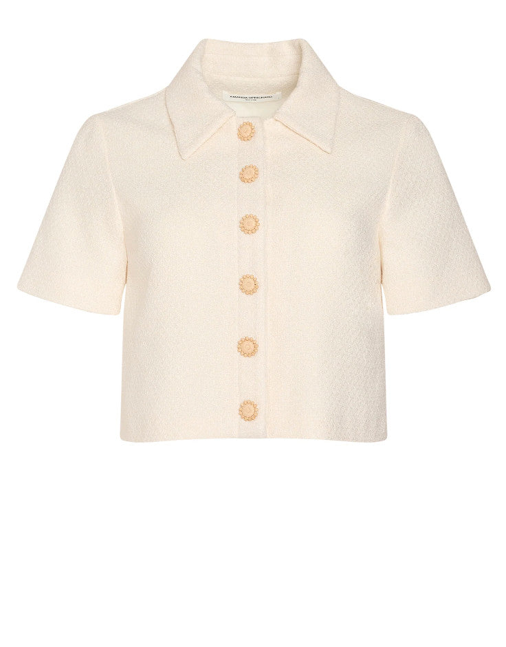 The Josie Top elevates summer outfits with its classic, tailored charm. Combining a sharp, structured collar with playful buttons, this cropped silhouette is perfectly structured and easy to style. Finish the set with the Josie Skort and your favorite leather boots.