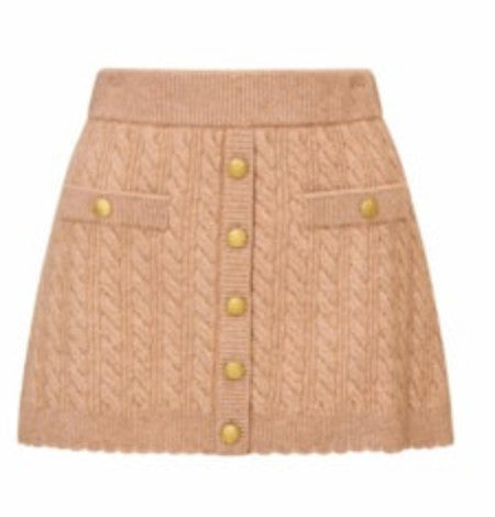 LoveShackFancy Berritt Cashwool Cables Cashmere Mini Skirt Camel Melange