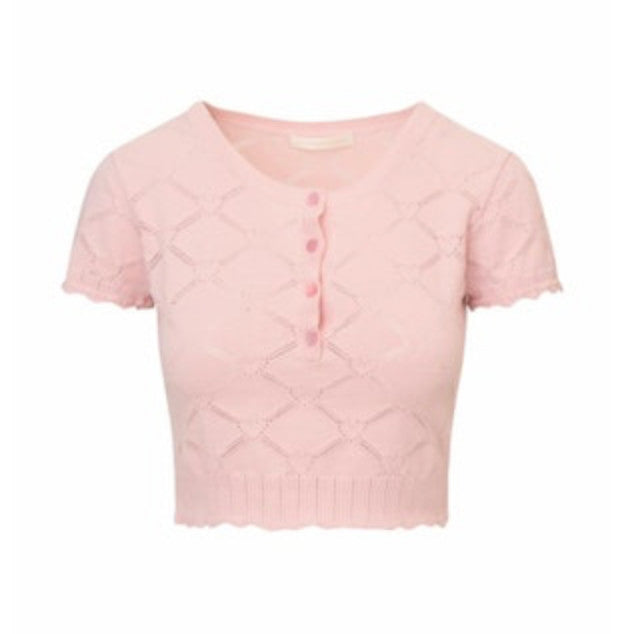 LoveShackFancy Lilifred Heart Argyle Knit Top Velour Pink