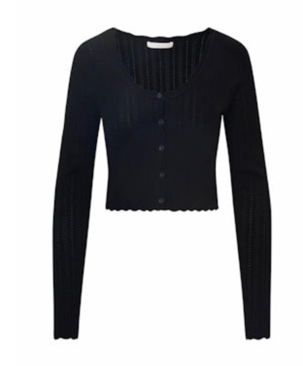 LoveShackFancy Martti Stretch Pointelle Cardigan Black