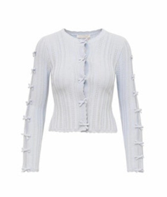 LoveShackFancy Zoriah Rib Pointelle Knit Cardigan Ice Blue