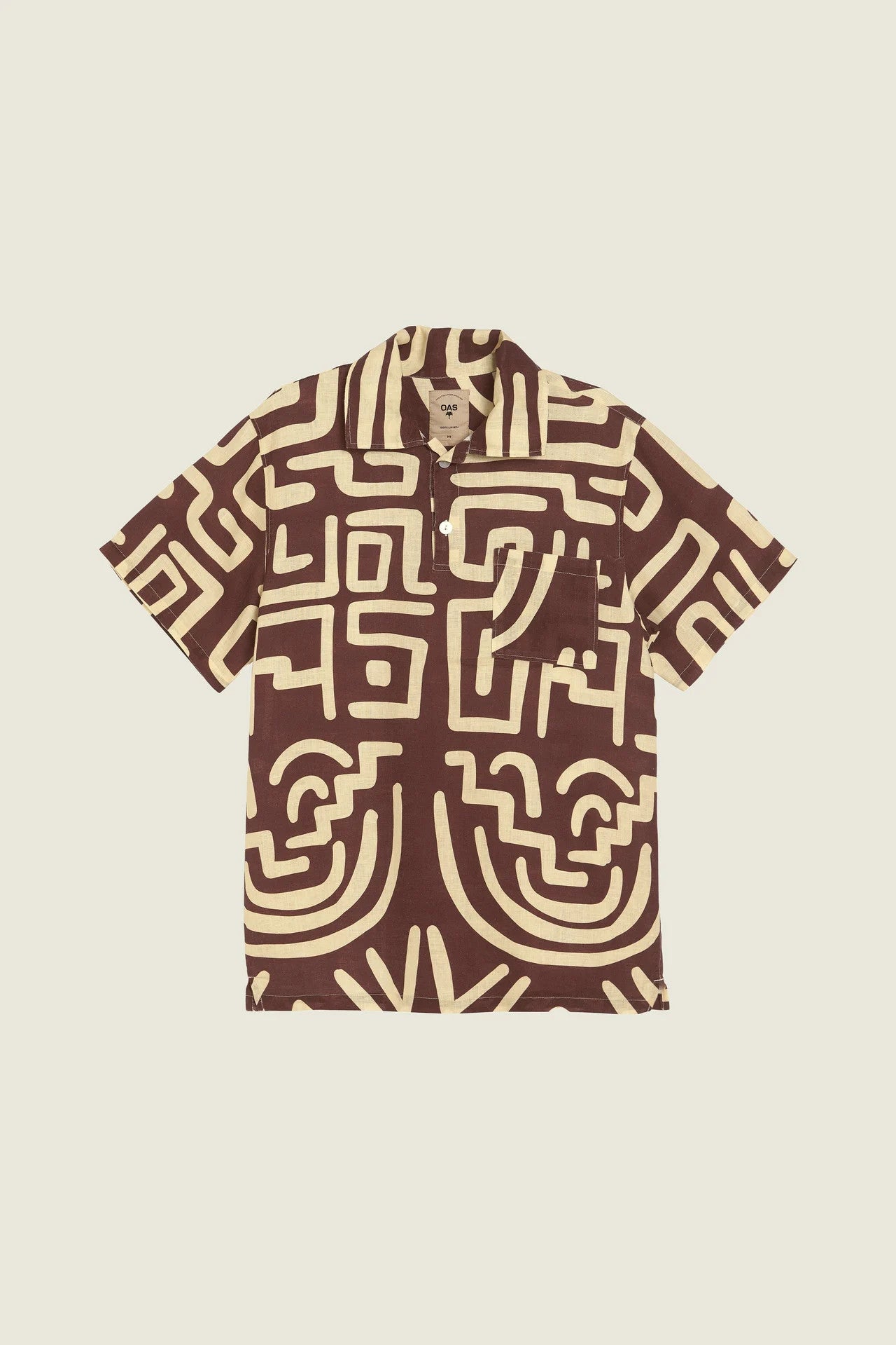 The Kalahara Girona linen shirt is tailored from breezy linen to a relaxed silhouette with boxy sleeves, a polo-style collar and horn-buttoned half-placket. Inspired by ancient cave paintings, the abstract pattern will look even more striking styled.