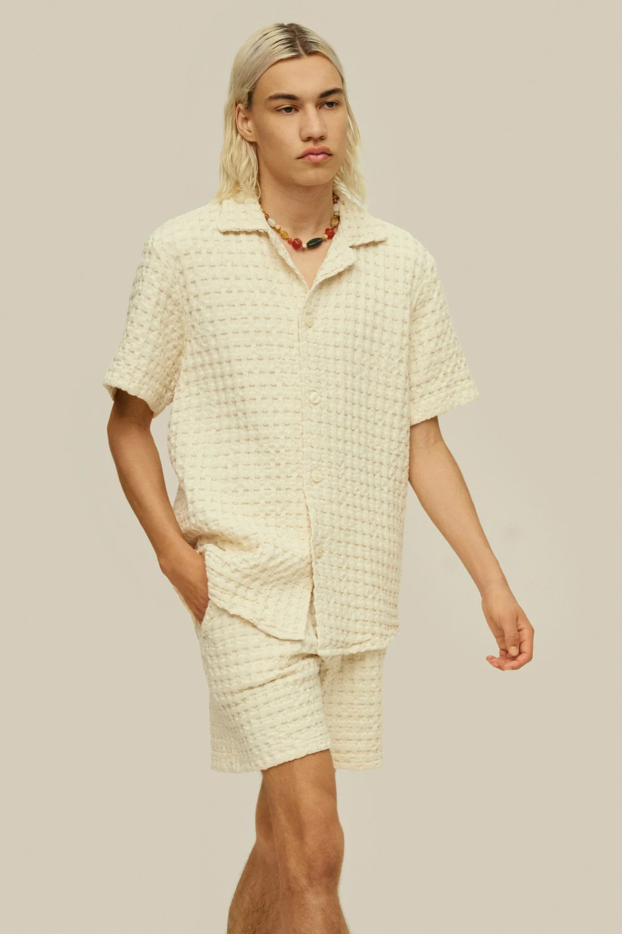 The Ecru Porto waffle shorts are woven with generous amounts of cotton to a waffle texture that feels particularly soft and breezy against skin. Cut for a relaxed fit, these shorts come with multiple pockets and have a comfortable drawstring waistband.